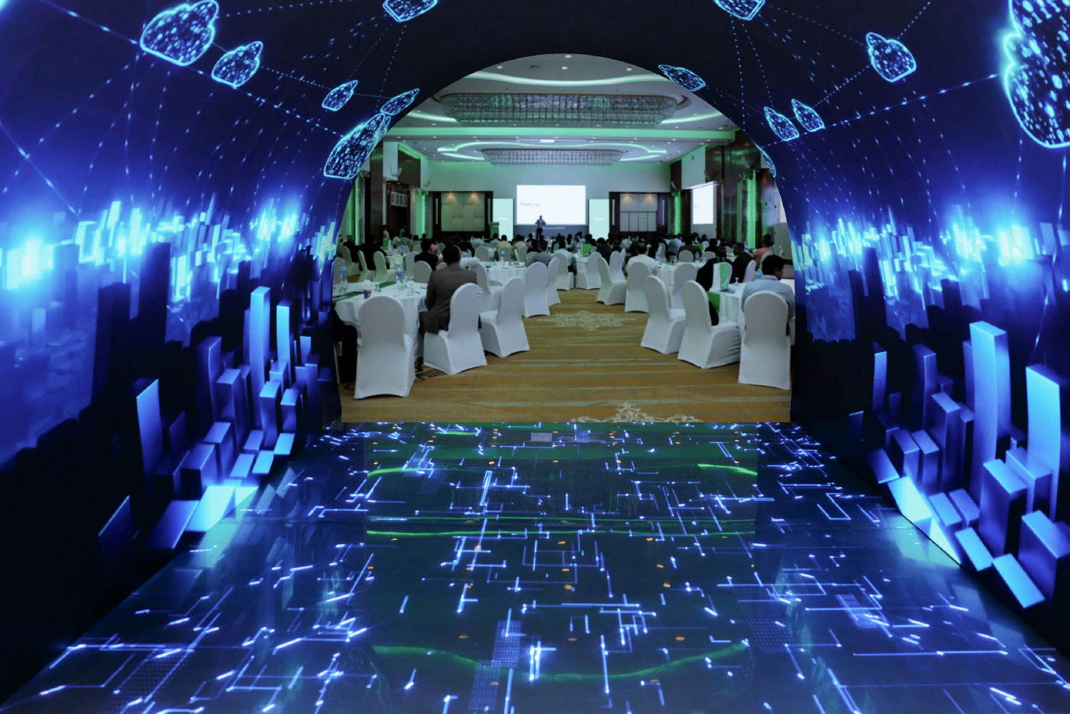 The event also included a dedicated experience center where attendees could engage with live demonstrations of next-generation solutions, such as Copilot, Microsoft Teams Voice Connect, Oracle Cloud Al, Kalaam Cloud and Forti Al. The excitement was further amplified by a unique tunnel entrance and a custom juice bar showcasing Kalaam’s solutions in a lighthearted and engaging manner.