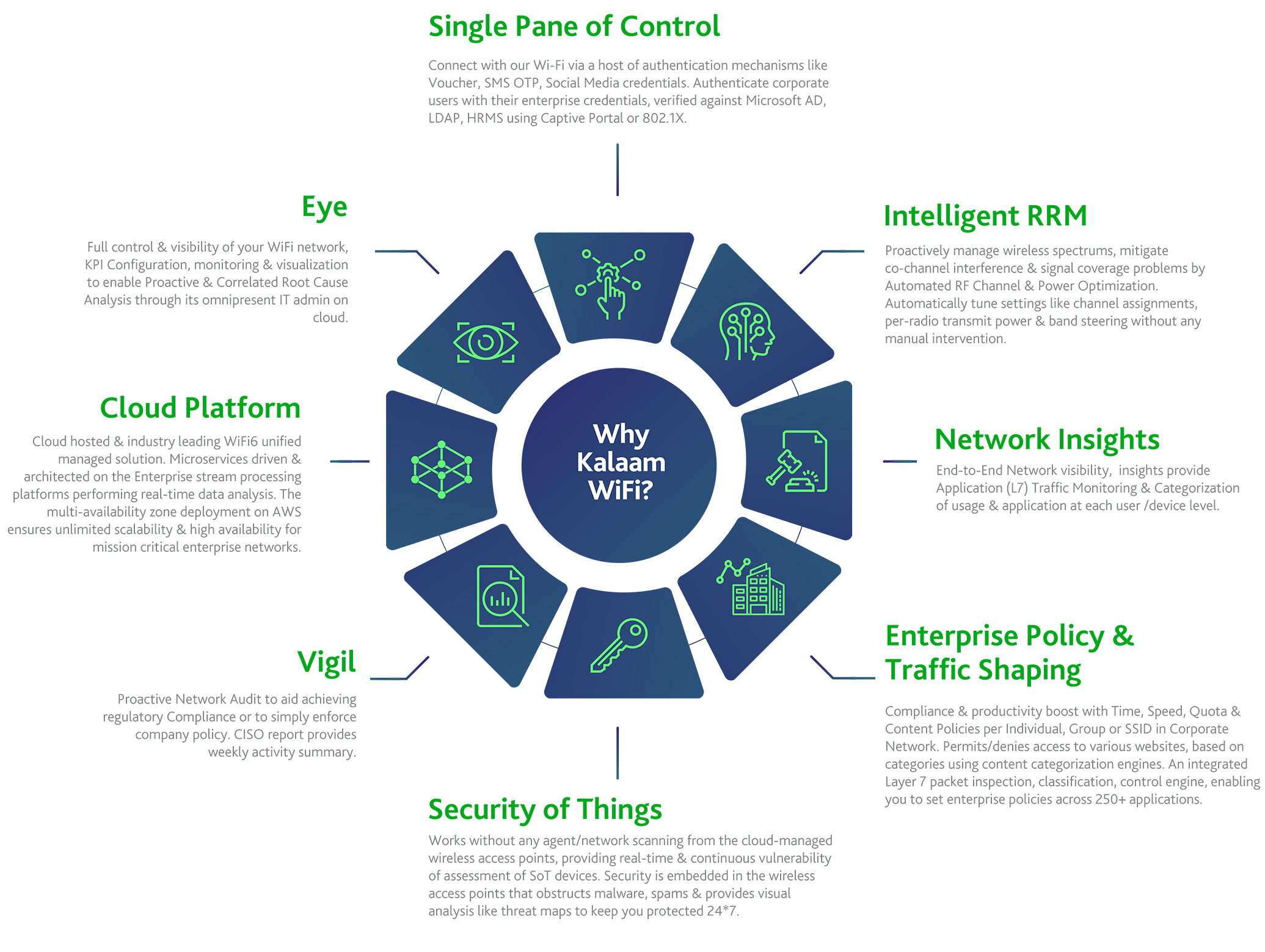 Cloud-driven Kalaam Managed WiFi provides reliable, optimized & secure wireless access, allowing for maximum productivity throughout the workplace. Our solution provide seamless & resilient connectivity with end-to-end visibility to optimise & adapt to any industry.
