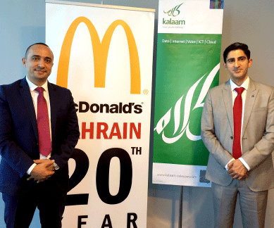 21th June, 2015: Kalaam Telecom – the 2nd largest ISP for corporates in the Kingdom of Bahrain partners with Fakhro Restaurants to provide free wireless Internet access at 14 McDonald’s restaurants across the island.
